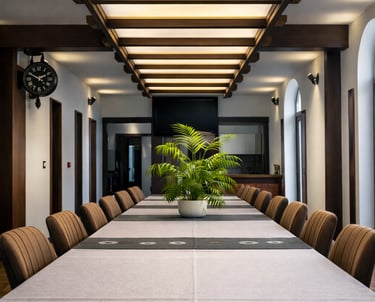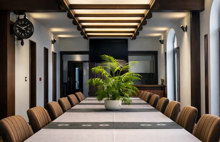 Salle de réunion lumineuse et équipée, idéale pour les sessions stratégiques, brainstormings et prises de décision en équipe, dans un cadre hors du bureau.